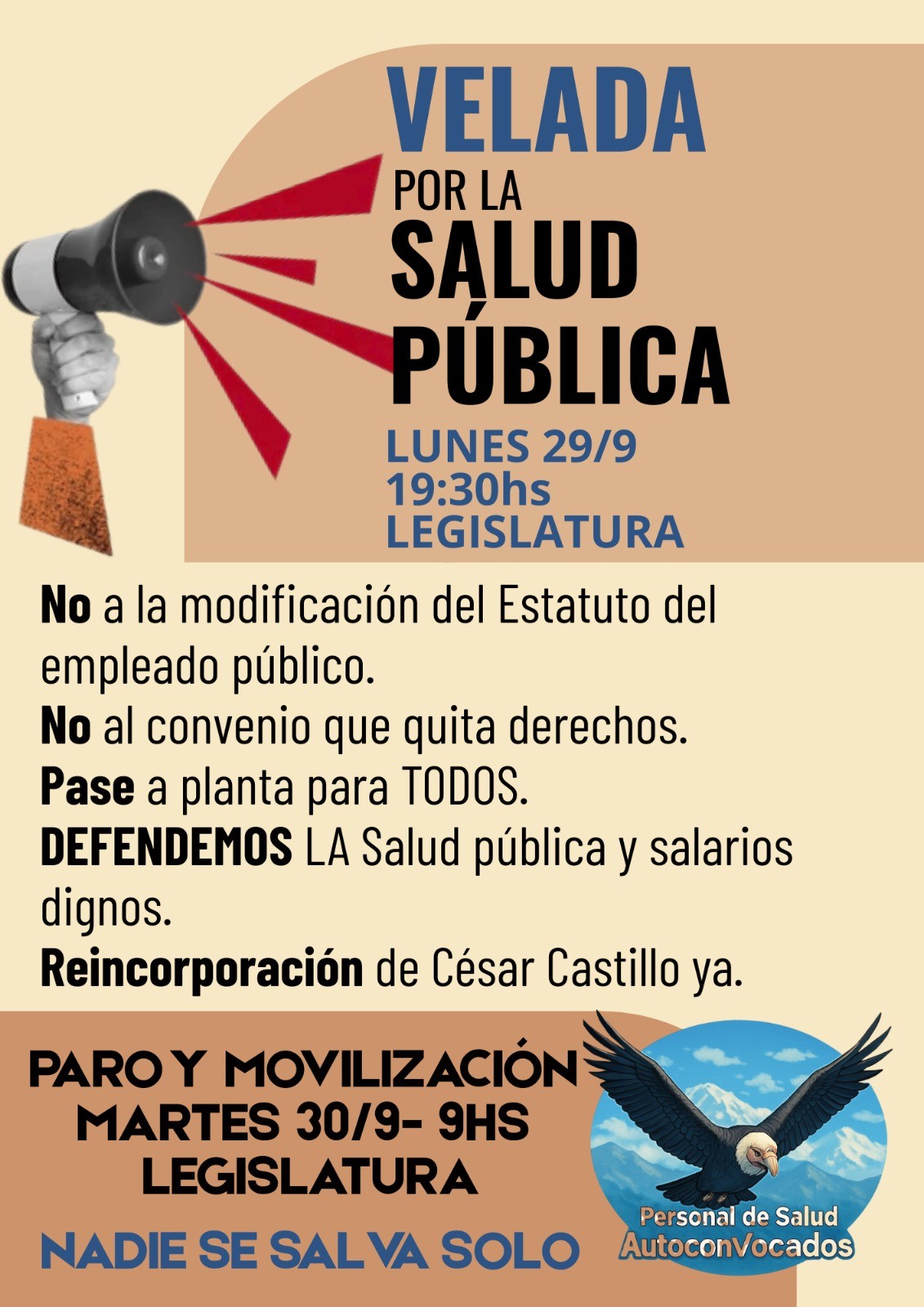 Este lunes 29 y martes 30 de septiembre, gremios estatales y trabajadores de la salud de Mendoza realizarán dos jornadas de protesta en rechazo al proyecto de reforma del Estatuto del Empleado Público impulsado por el gobernador Alfredo Cornejo.