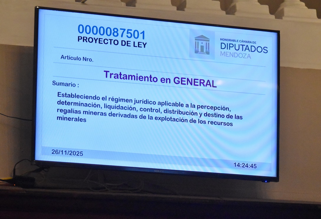 La Cámara de Diputados de Mendoza dio media sanción al proyecto de ley impulsado por Alfredo Cornejo que redefine el régimen jurídico de regalías mineras en la provincia y otorga la potestad al Ejecutivo de rebajar regalías por decreto a pedido de las mineras.