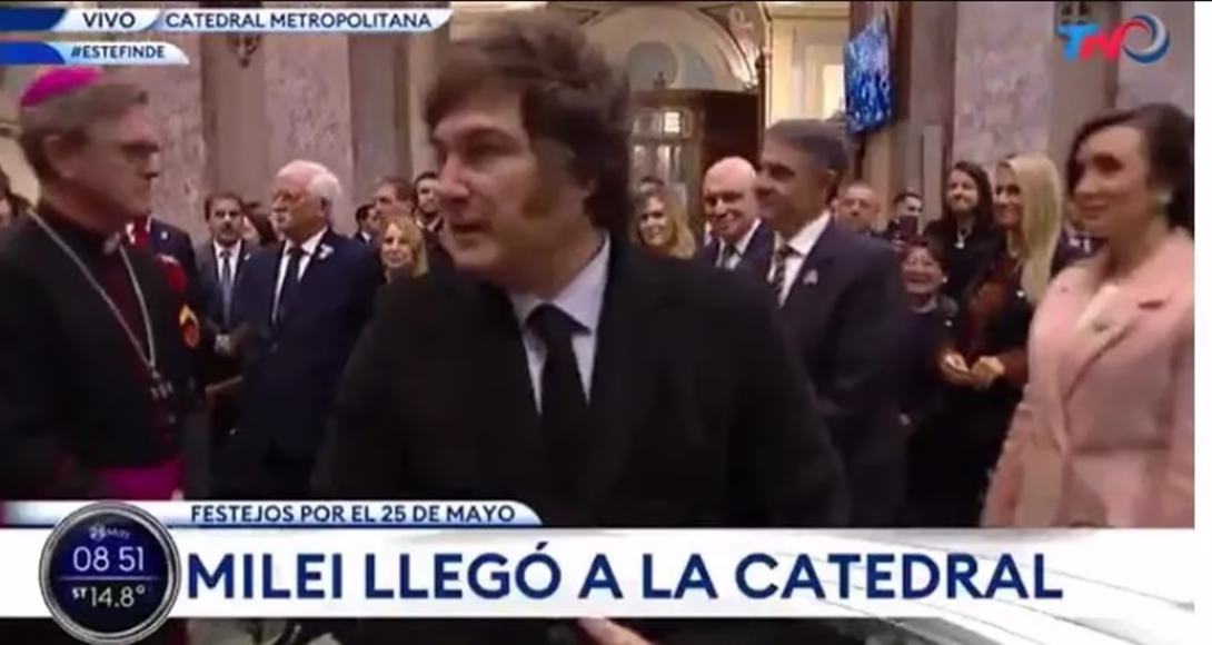 El gesto fue evidente y quedó registrado en la transmisión oficial. Milei descendió del vehículo presidencial, se acercó con la mirada al frente, no extendió la mano a quienes lo aguardaban en fila y continuó su caminata directo hacia el interior del templo, generando incomodidad visible en los rostros de Macri y Villarruel.