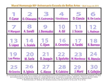 Un fonazo fue suficiente para que dieran el sí treinta ahora consagrados pintores, escultores, caricaturistas e inclasificables artistas que una vez fueron blancas palomitas en el patio de la escuela, ubicada en Patricias Mendocinas y Pedro Molina, de Ciudad. El bello caos que se gesta se despliega en un territorio dividido y organizado en cuadraditos con nombre y apellido: