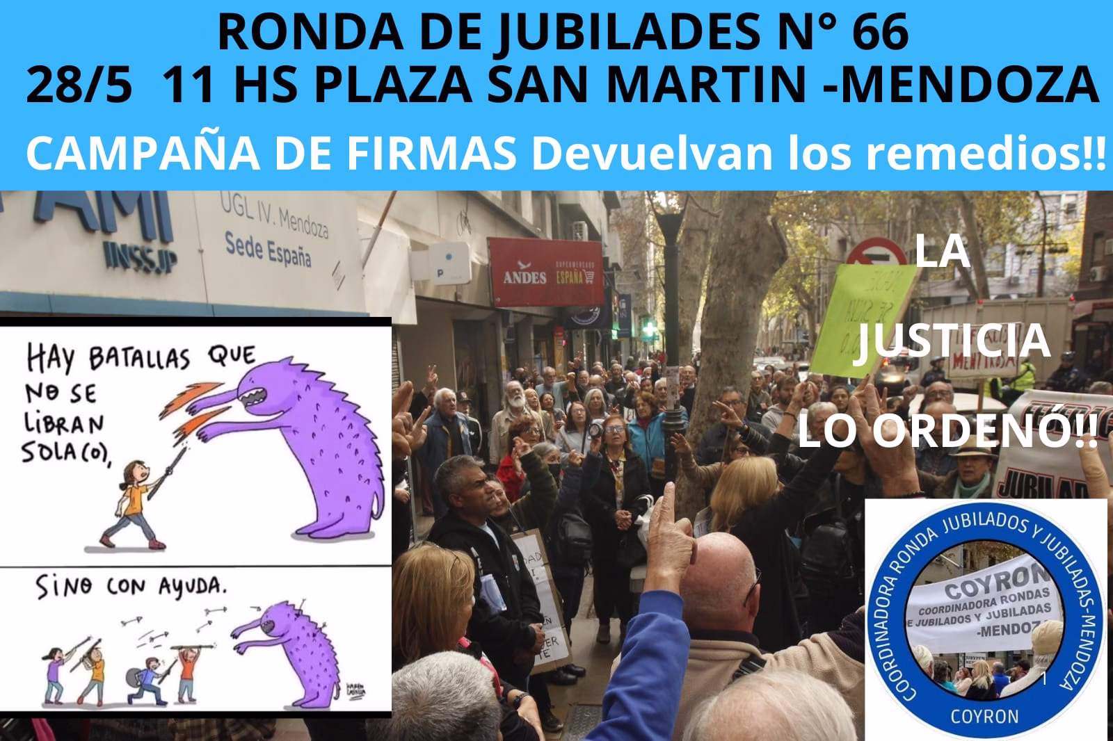 El frío matinal no detiene la lucha de los jubilados mendocinos. Este miércoles, volverán a reunirse en la ronda número 66 en la Plaza San Martín, de Capital, donde reclamarán por el acceso a medicamentos que el PAMI sede Mendoza se niega a entregar, a pesar de órdenes judiciales favorables.