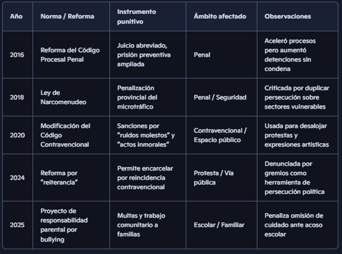 La reforma se inscribe en una línea de endurecimiento contravencional iniciada por Cornejo en 2015. Según el último informe de la Asociación Xumek, se han aprobado más de 25 reformas penales orientadas a ampliar el poder punitivo estatal. Un antecedente inmediato fue la figura de “reiterancia”, que permite encarcelar a quienes protestan en la vía pública por reincidencia, criticada por gremios y organizaciones sociales.