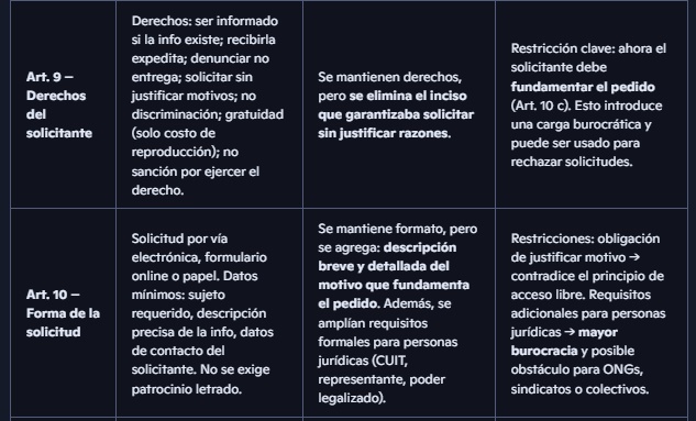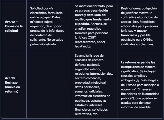 Además, se endurecen los requisitos para personas jurídicas, que deberán presentar un poder legalizado vigente. Esto burocratiza el acceso y desalienta a organizaciones civiles y medios de comunicación, actores centrales en el control ciudadano.
