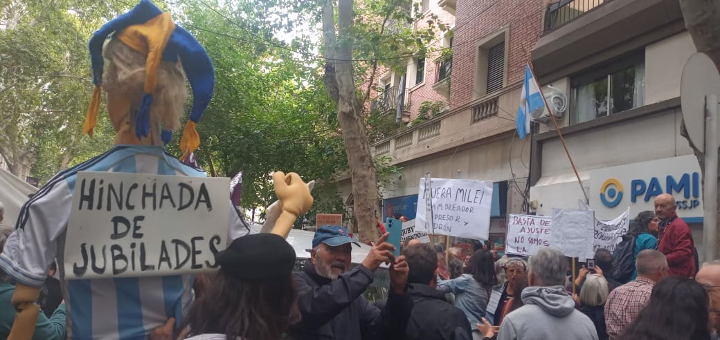 Al grito de "¡Milei, Cornejo, les roban a los viejos!" dieron vuelta por la plaza San Martín, en medio de un gran operativo de seguridad desplegado por el Gobierno. Había cuerpos especiales y móviles desplegados en la plaza y cuadras aledañas. Frente al PAMI también se montó un pelotón de agentes y se cerraron las puertas.