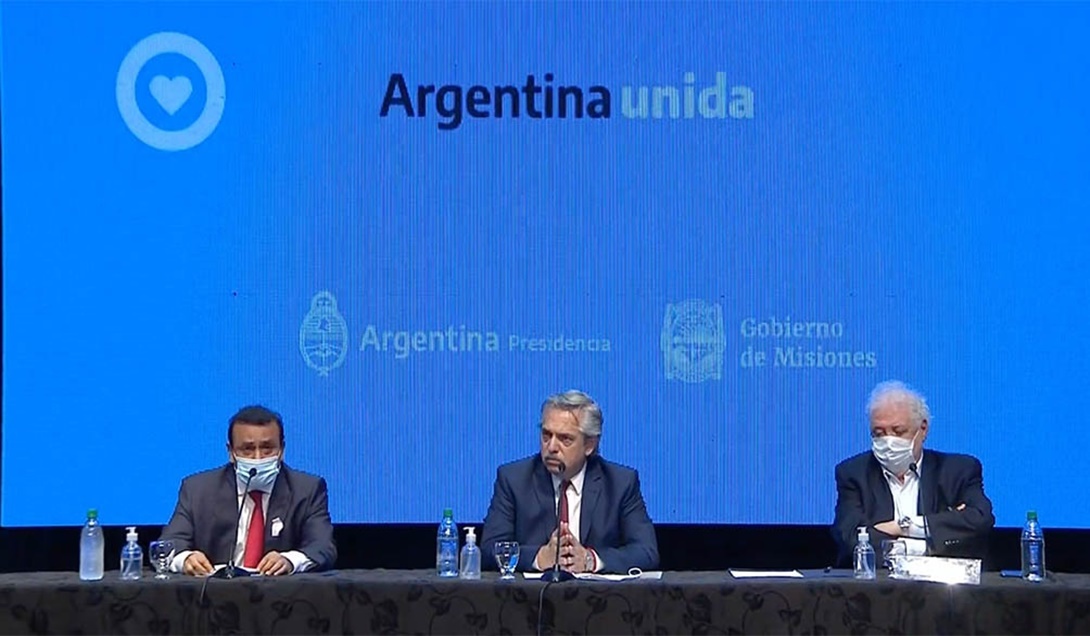 Desde Misiones, Alberto Fernández anunció: "Vamos a seguir exactamente en las mismas condiciones en las provincias" donde se registra el mayor número de contagios por coronavirus, y en el Área Metropolitana de Buenos Aires (AMBA), donde "a pesar de que hay una baja clara, todavía no estamos en condiciones de quedarnos tranquilos".