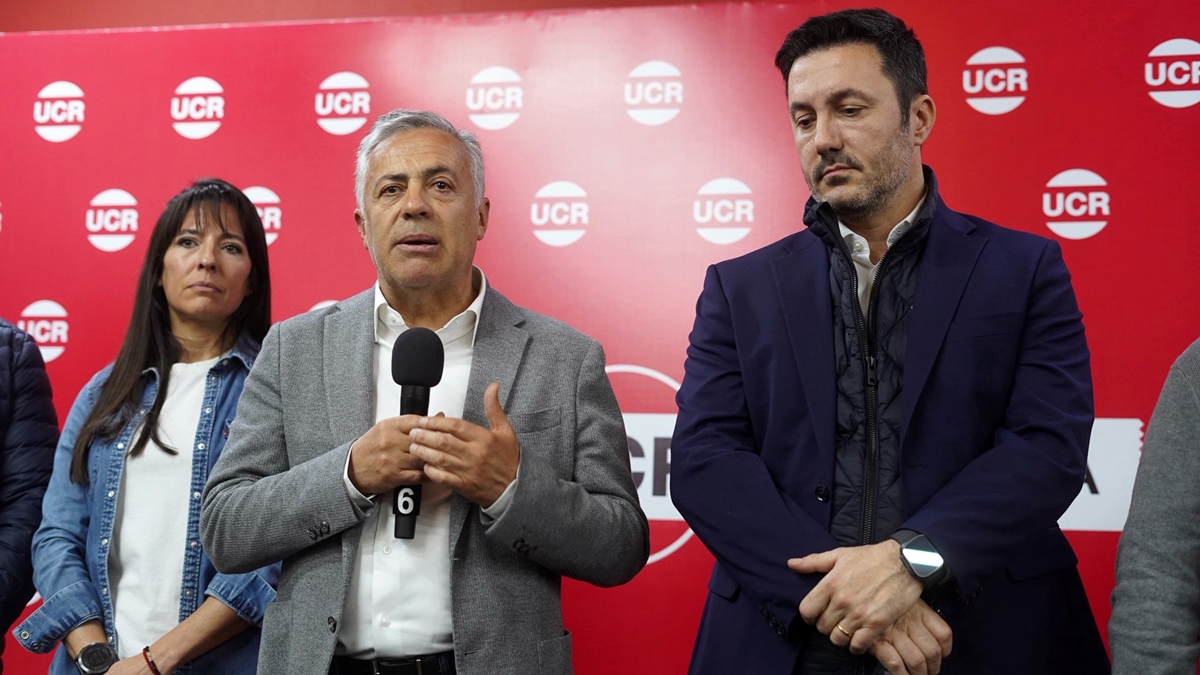 El escenario se montó en el Comité Provincial de la UCR, ubicado en la calle Alem, con los intendentes del partido como figuras centrales de la escenografía. La imagen buscó transmitir unidad, pero dejó entrever tensiones no resueltas. La presencia de los intendentes, muchos de ellos incómodos con la alianza libertaria, fue más un gesto de disciplina partidaria que una muestra de entusiasmo.