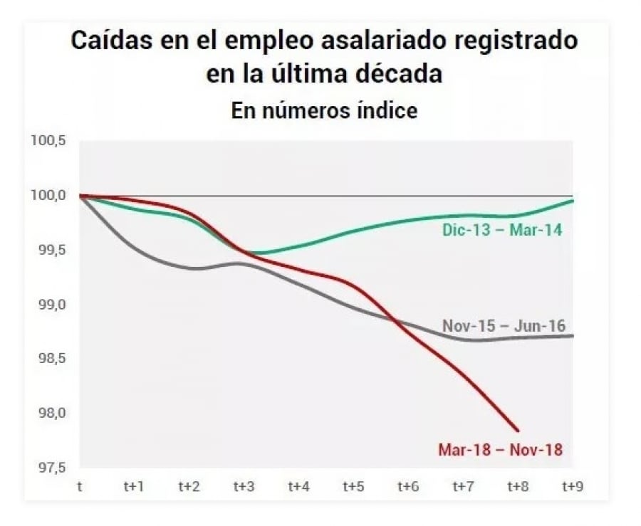 Un informe realizado por el Observatorio de Comercio Exterior, Producción y Empleo (CEPE), organismo dependiente de la Universidad Metropolitana para la Educación y el Trabajo (UMET), indica que “la caída del empleo privado formal ya alcanza el máximo registro de la década, superando el antecedente de 2016, con una tendencia negativa que se acentúa”.