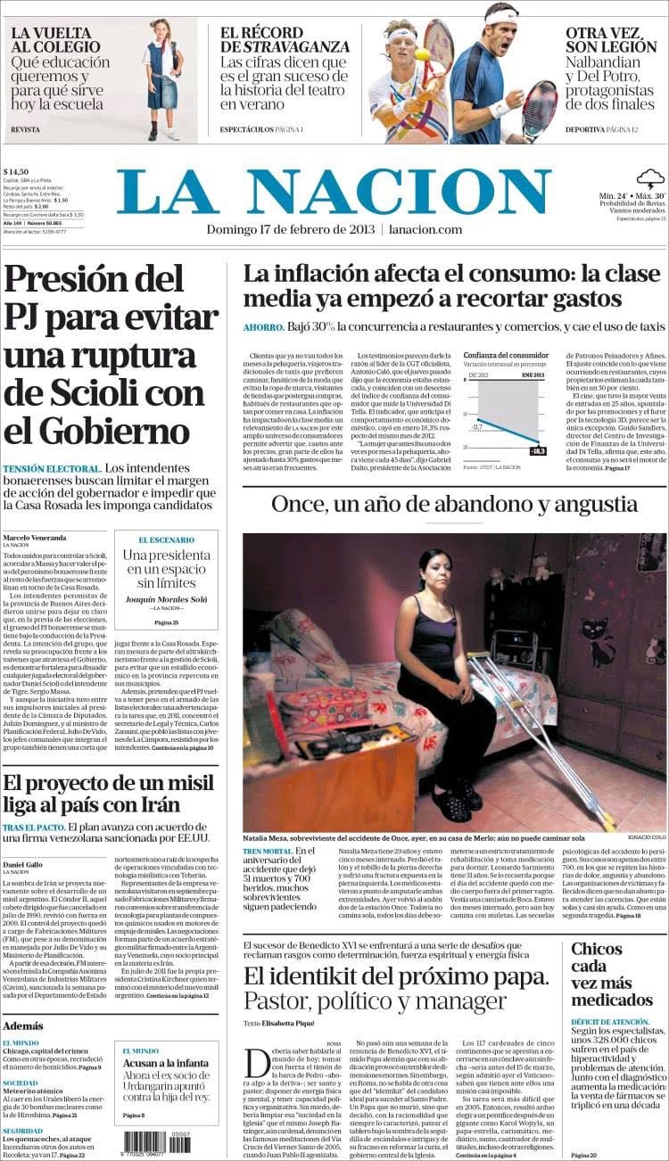 Este es el clásico del domingo: el diario informó en su edición de hoy que el Gobierno reflotó la idea de construir el Cóndor II, asociado a Irán. El ministro de Planificación acusó "otra burda operación" del matutino.