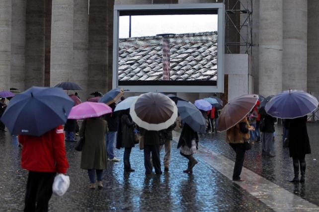 Esta mañana se esperaba la primera humareda a las 10.30 horas (6.30 de Argentina) pero no salió ni humo blanco ni negro, para decepción de los cientos de fieles que se congregaron bajo la lluvia para seguir la elección del próximo pontífice.