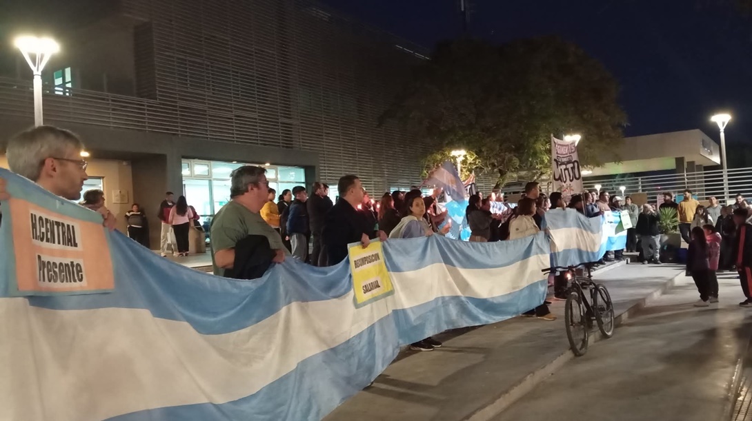 Como parte de la jornada de lucha, una columna llegó desde el hospital Notti hacia el Central, sumándose a la vigilia. “La precarización no es un problema en el sistema de salud, es una política que se extiende. Por eso marchamos desde el Notti”, señalaron referentes gremiales.