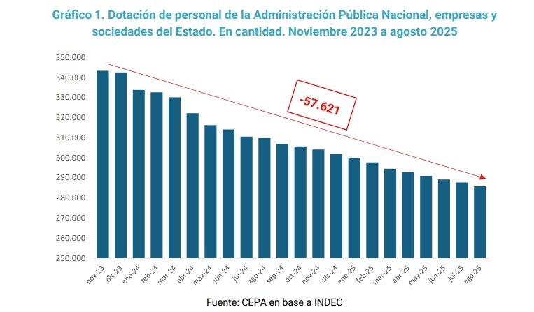 CEPA atribuye los despidos a “la política deliberada de ajuste y desmantelamiento del sector público nacional, con un impacto masivo tanto en la dotación de personal como en las capacidades operativas del Estado”.