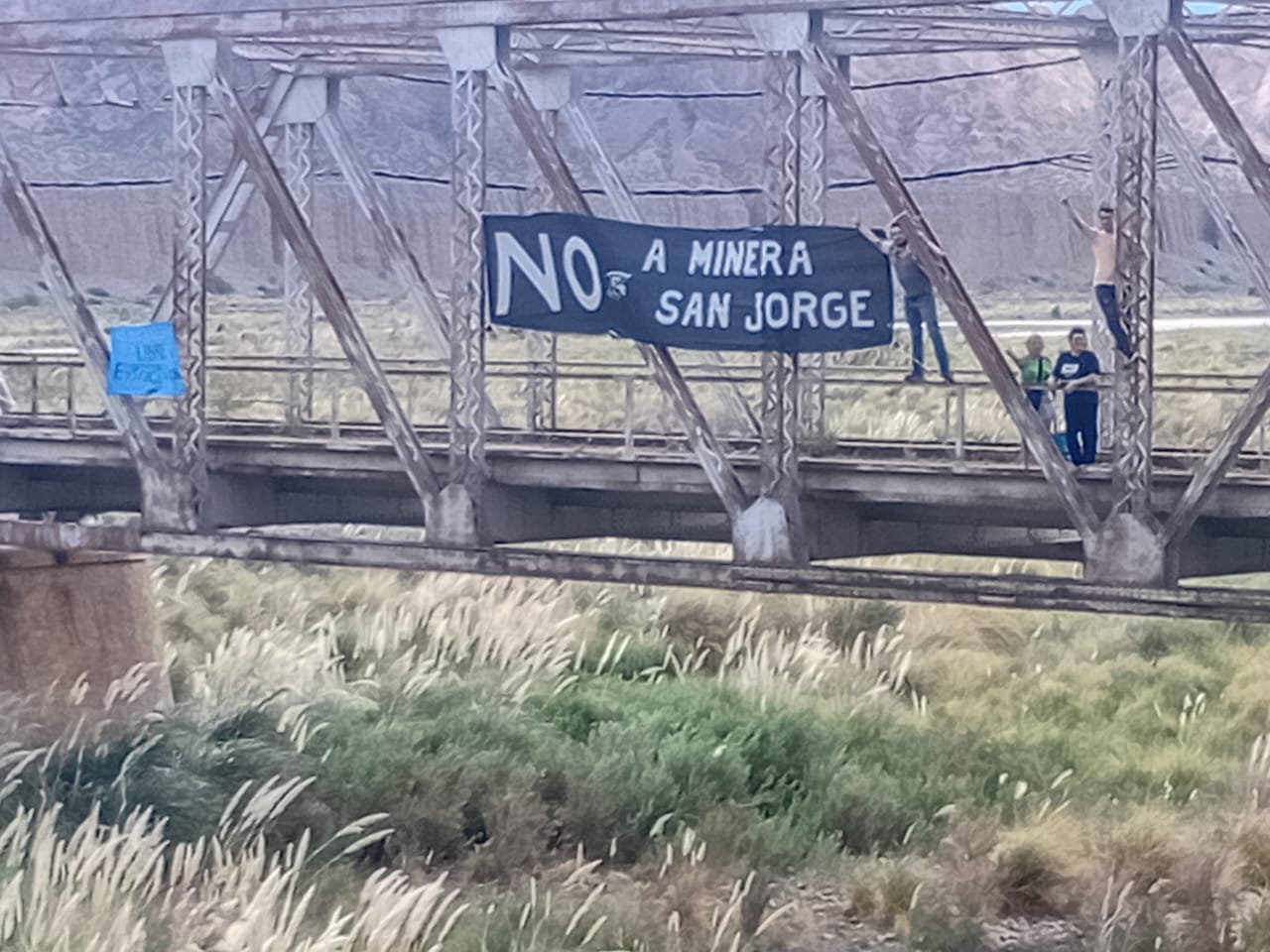 Cerca de las 17, el convoy alcanzó Potrerillos en un avance lento, dificultado por el recambio turístico de quincena hacia y desde Chile y por los controles de la Policía y la Gendarmería. Los retenes y verificaciones ralentizaron el tránsito y generaron largas esperas, denunciadas por los vecinos como maniobras de dilación. Sobre el puente del río Mendoza, puerta simbólica de entrada a Uspallata, se desplegó una bandera con la leyenda “No a la minera San Jorge”. Pasadas las 18.40, el primer tramo de la caravana logró atravesar el puente, marcando un hito en la jornada.