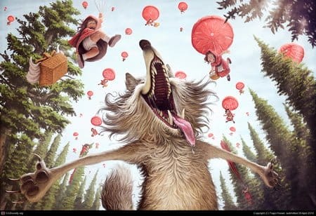 Años después de ser salvada del profundo vientre del lobo feroz, Caperucita se transformó en una bella y curiosa estudiante de periodismo, llena de preguntas como antaño, y tan apetecible para los depredadores como en su tierna infancia.