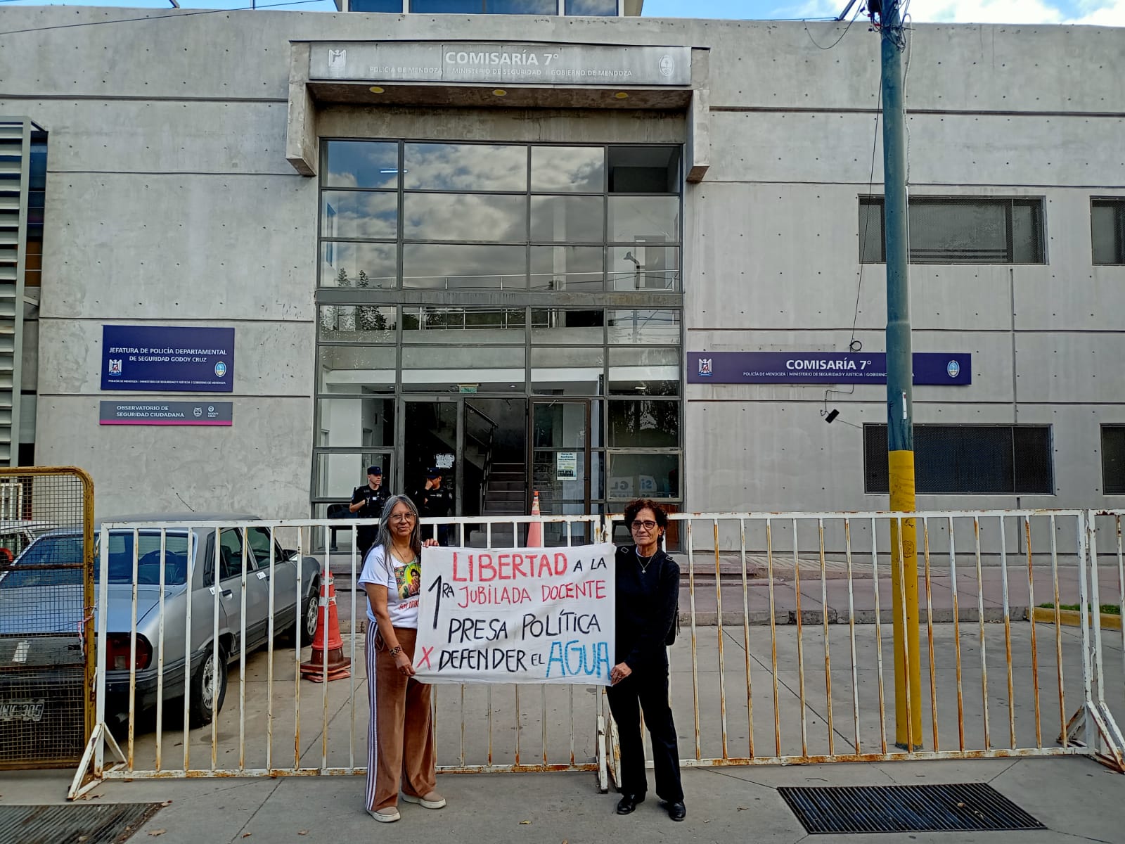 Una de las detenidas en la razzia de la Policía de Mendoza tras la marcha contra la reforma de la Ley de Glaciares es una docente jubilada, quien hasta la tarde noche de este jueves permanecía detenida en la comisaría 7ma, de Godoy Cruz. Así lo revelaron a EXPLÍCITO miembros de las Asambleas por el Agua. Mabel Miatello estaba en la marcha cuando la policía acorraló a los manifestantes en la Peatonal y detuvo a ocho de ellos, encerrándolos en la exSubsecretaría de Turismo.
