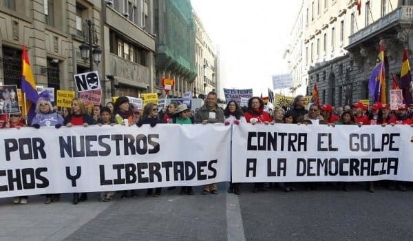 Clamor en las calles de España "contra el golpe a la democracia", que denunció el colectivo Marea Ciudadana23 de febrero, 2014