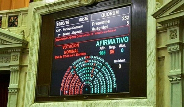 El macrismo aprobó en Diputados del pago a los buitres con el apoyo de Massa y Bossio y la oposición del kirchnerismo y la izquierda16 de marzo, 2016