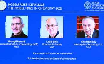 Síntesis de productos cuánticosNobel de Química a científicos por desarrollar nanopartículas que transmiten luz muy brillante4 de octubre, 2023