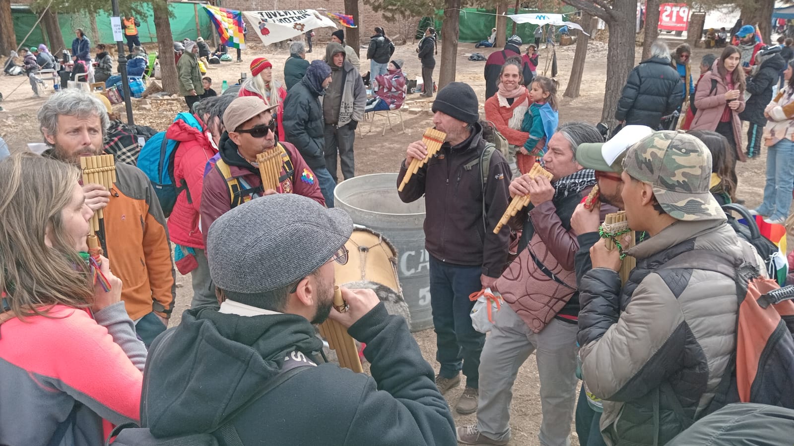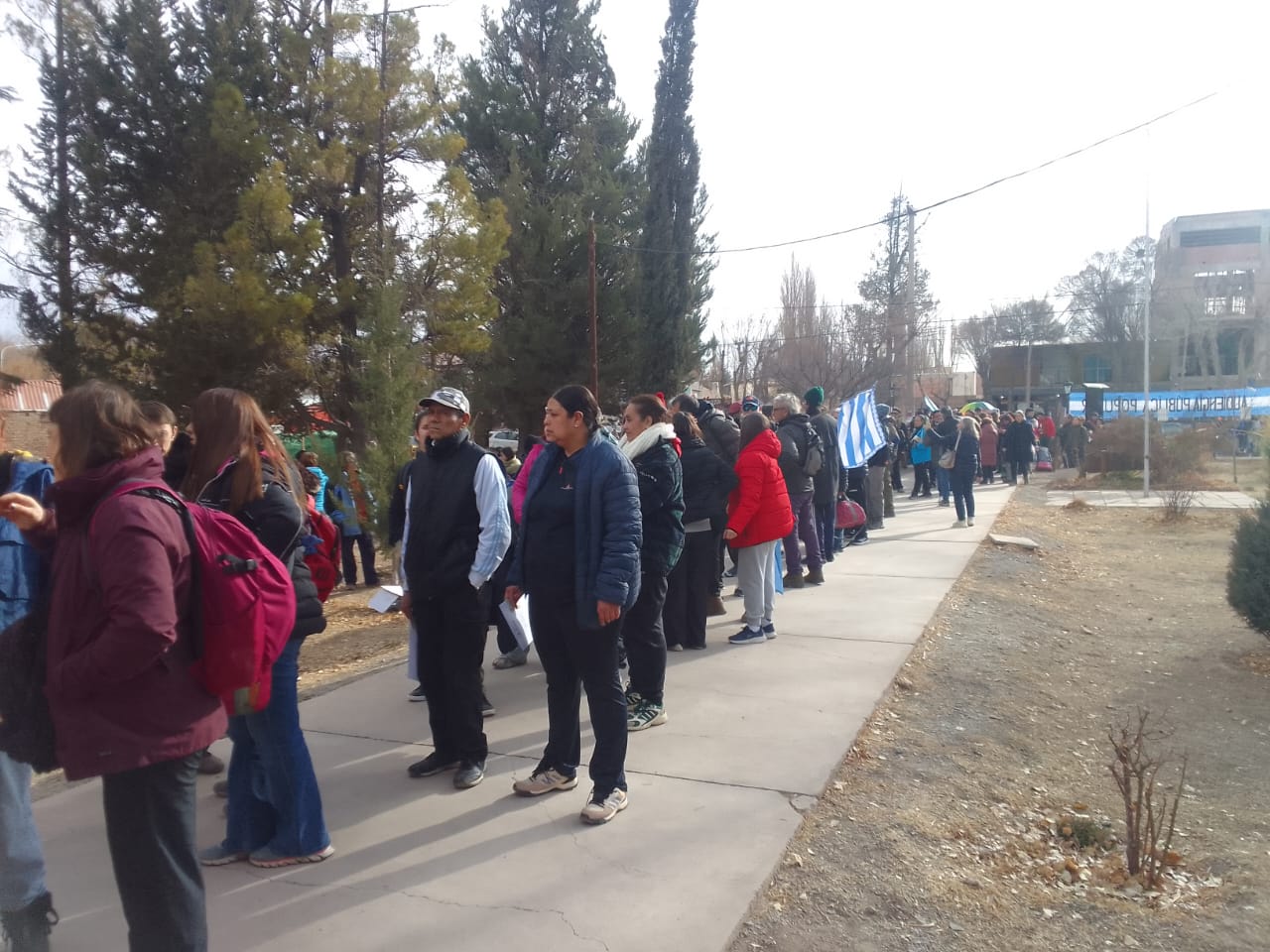 Por un momento, parecía que todo Uspallata se había volcado a la parroquia. No por misa, sino por algo más urgente: decirle no a la mina de San Jorge. El sol pegaba, aún colándose entre las nubes, con esa claridad que sólo se ve en los pueblos de montaña. Los termos pasaban de mano en mano como si fueran testigos de una causa. Las tortas fritas chisporroteaban en una ollita y alguien ofrecía café.