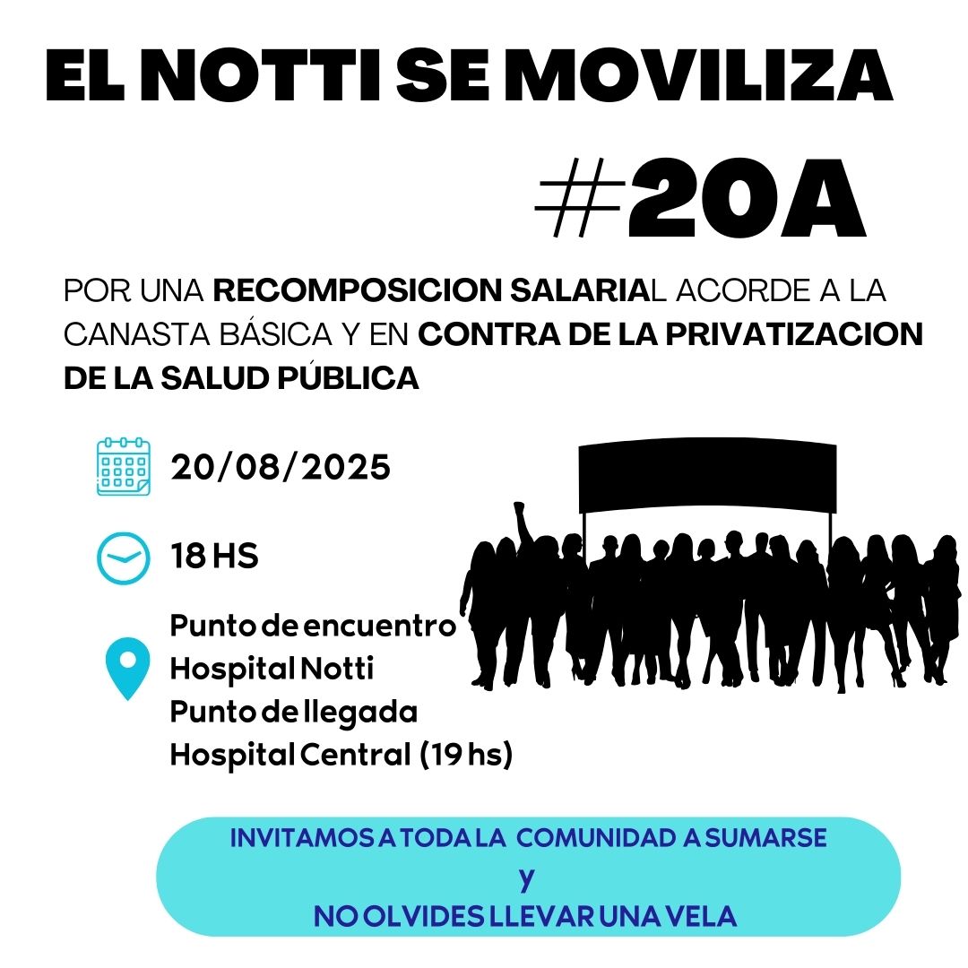 Como parte de la jornada de lucha, se anunció que una columna de trabajadores partirá desde el Hospital Notti hacia el Central, sumándose a la vigilia. La acción busca visibilizar que el conflicto no es aislado, sino que atraviesa múltiples instituciones sanitarias de la provincia.